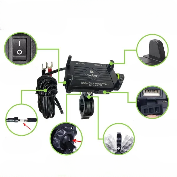 BOBO BM2 Claw-Grip Aluminium Bike Phone Holder with 2.5A USB Charger