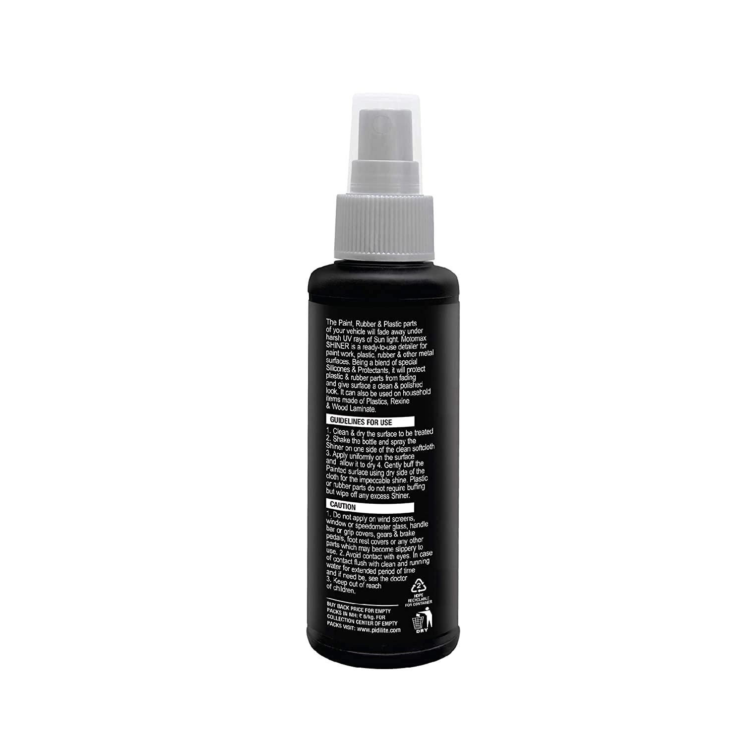 Moto max Shiner Multi-Surface Spray Polish (100ml) is a professional-grade polish that blends seamlessly with car primers and paints. It applies smoothly over a sponge, making it ideal for retouching bikes, scooters, SUVs, truck tires, and more. This versatile spray removes paint marks, scratches, and fine swirls, preparing surfaces perfectly for waxing. Enriched with polishing oils, it delivers a deep, rich, wet-look shine on car and bike paint. Additionally, it cleans dirt and dust from plastic, metal, tire, and rubber parts, offering an all-in-one solution for a superior finish.