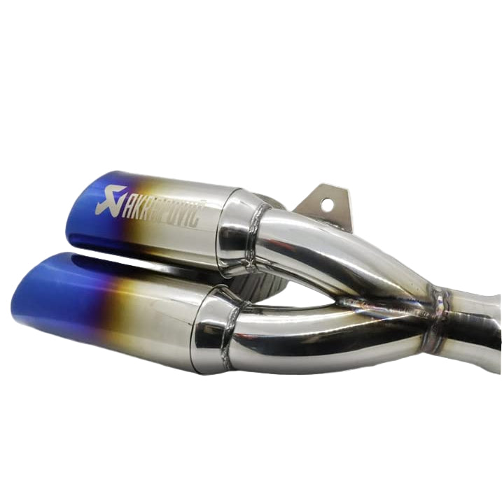 Transform your motorcycle's performance with the Replica Akrapovic Double Barrel Exhaust. Made of high-quality stainless steel, this universal slip on exhaust provides optimal airflow for increased horsepower and torque. The included DB Killer allows for customizable sound levels, giving you the ultimate riding experience. Upgrade your ride today.