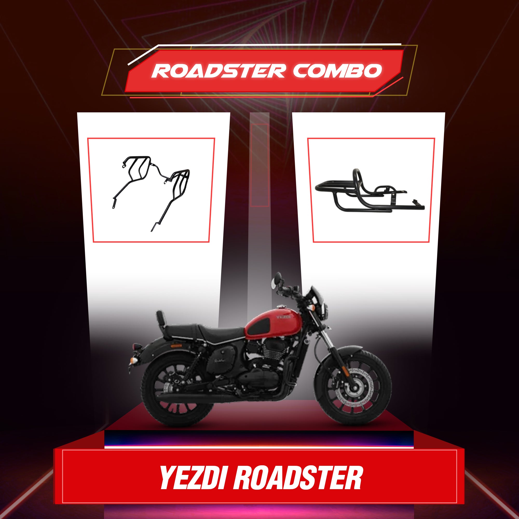The Roadster Combo is a top rack designed for the Yezdi Roadster. It features a strong and durable tubular frame and a premium saddle stay which is suitable for all Jawa models and Yezdi Roadsters. This combo offers the ultimate in storage convenience and reliability.