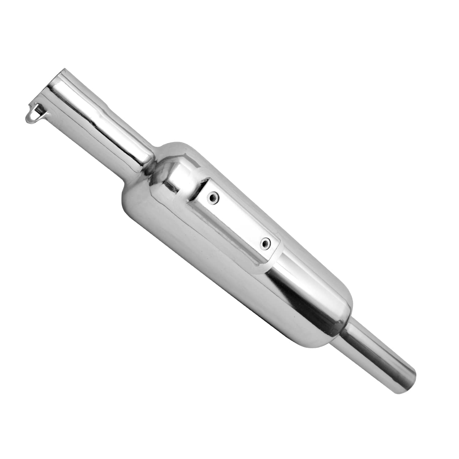 The Slim Pipe Mini Punjab Exhaust is designed for the Royal Enfield Standard Reborn, Classic Reborn, and Meteor 350. Its compact size adds to the aesthetic appeal and improves the exhaust flow, resulting in enhanced performance. Upgrade your ride and stand out on the road with this high-quality exhaust.