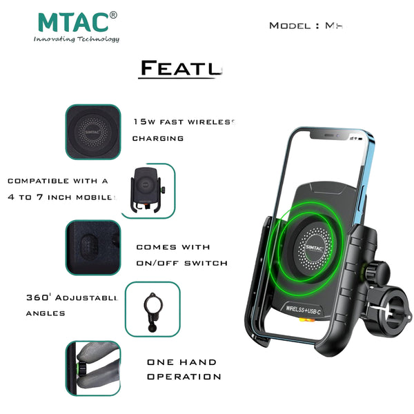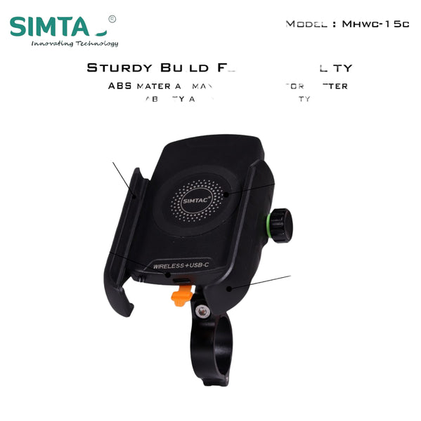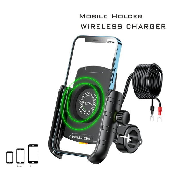 15W Fast Wireless charger :Give your mobile the powerful charging support they deserve. This mobile holder comes with built in wireless Charger + USB c which is a 15w fast charger . thus, leading to hassle free ride without any worry about running out of Battery on a ride. Its 6V-3A Output provides as fast charging as wall charger for capable devices.